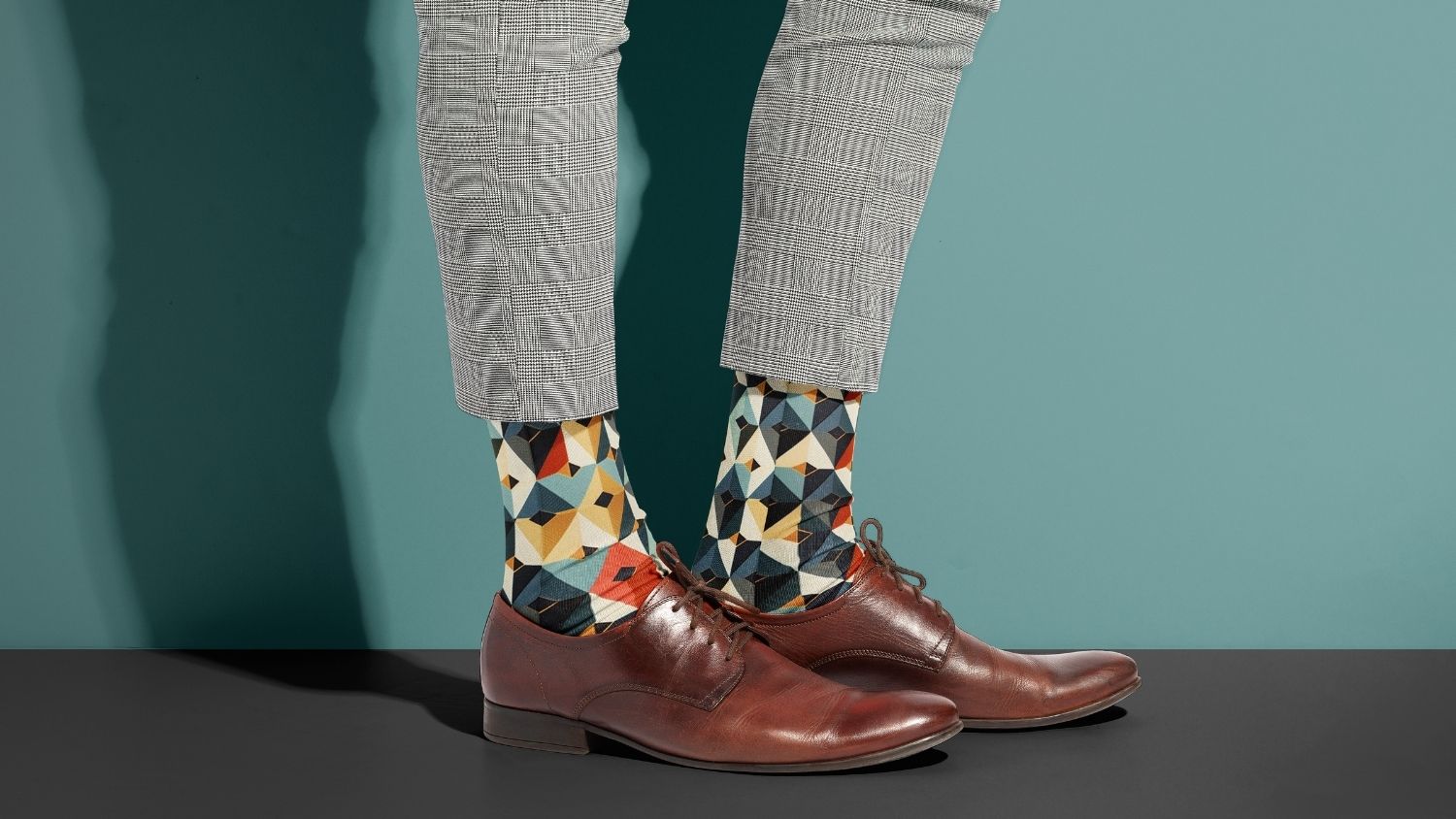 Teal & Orange Abstract Dress Socks – Colourful Geometric Gift